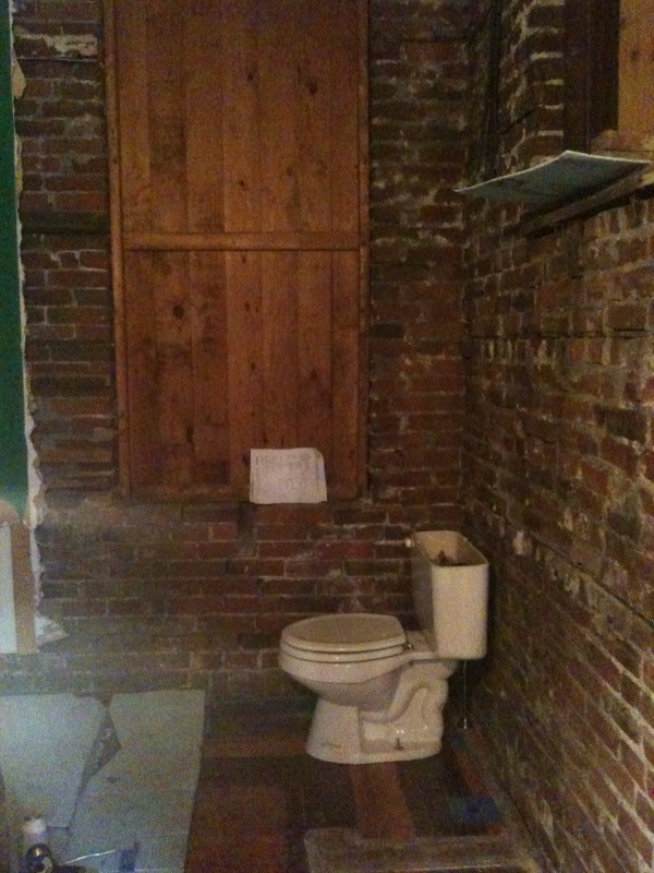 Nevermind the fact there’s no walls… It’s currently the only working “bathroom” in the house until next week! For the hundreth time, I’m really glad we’re not living there while working on the house!