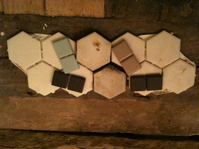 Tile samplin October 7, 2009 · by madisonsquare · Bookmark the permalink. · New 2″ Hex tiles from Daltile in Biscuit, the two center ones are really old they are the ones we found while demo-ing… Testing out a few colors for floor accents… what do you think? Share this: Click to email a link to a friend (Opens in new window) Email Click to share on Facebook (Opens in new window) Facebook Click to share on Pinterest (Opens in new window) Pinterest Like Loading... Related