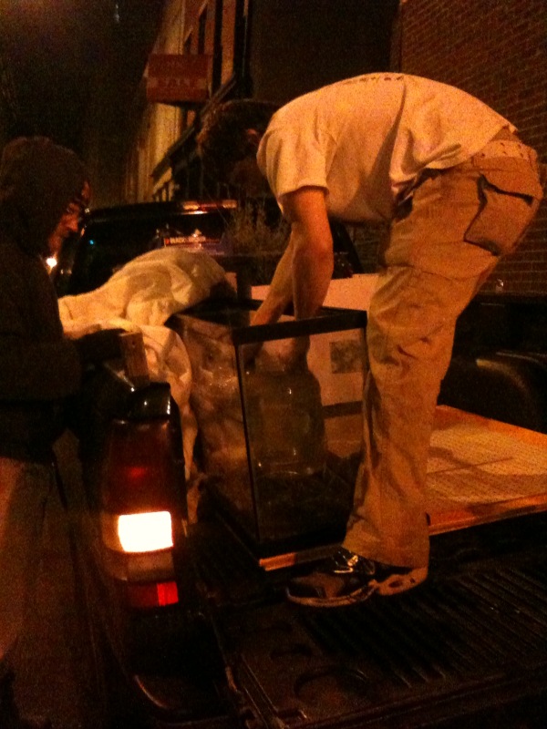 Moving Fish Is Complicated December 10, 2009 · by madisonsquare · Bookmark the permalink. · Here’s Rob at our window… The apartment was just glowing white tonight Loading buckets of water and fish back into the tank in the truck for the cross town ride… They seem a bit shaken, but they’ll love their new home – worth the move! Share this: Click to email a link to a friend (Opens in new window) Email Click to share on Facebook (Opens in new window) Facebook Click to share on Pinterest (Opens in new window) Pinterest Like Loading... Related