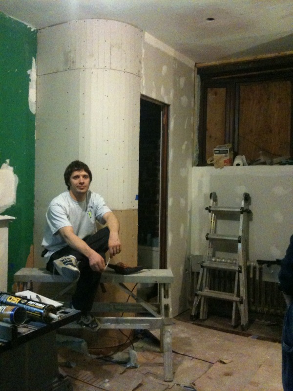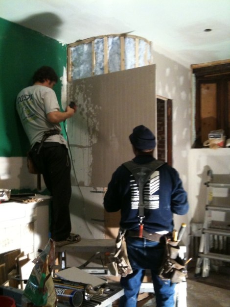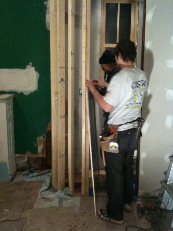 Seem too easy? That’s because we have to do it all again to get the minimum 1/2″ thickness. Then spackke and get it super smooth. But stll, fairly easier than I imagined it would be- and now we have a “half bath” with 4 walls!