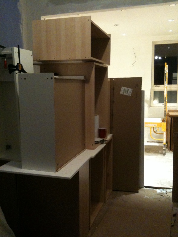 First, the official serious assembly photos. Thank you to the fabulous pro Ikea cabinet assemblers!!! Everyone worked super hard and everything was assembled, including two food breaks, in under 7 hours.