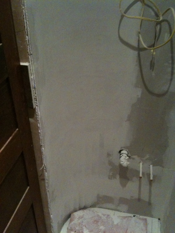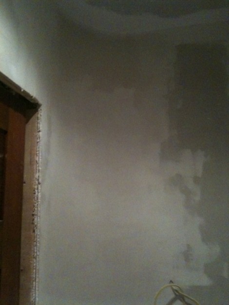 Meanwhile (and these iphone pictures do not give it justice) I put what I hope is the last coat of mud on the interior bathroom curve wall: