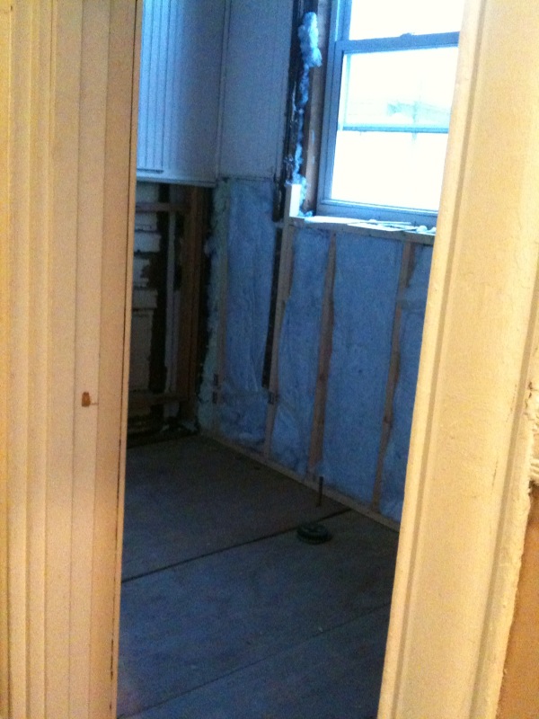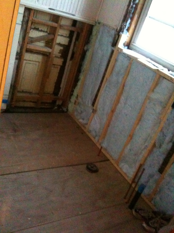 Yesterday we got the last piece of plywood down on the bathroom floor:
