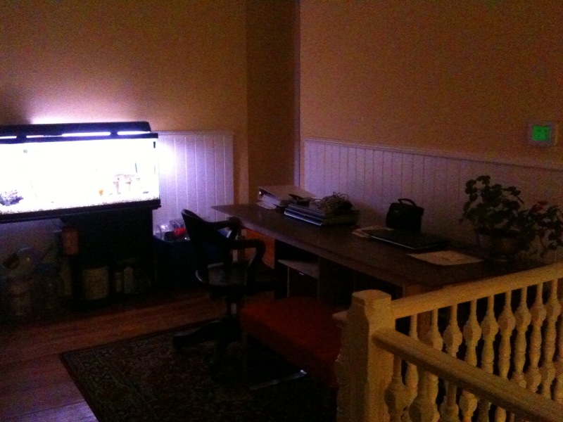 5) Office. We set up our office on the third floor (this is a terrible picture but you get the idea)-rolled out the rug and everything. Now our laptops, a bit sad without internet for the past month and a half, have a home. This also enabled us to move our 3″wide + project house monster binder, that Rob is so awesome at keeping together and updating, to the third floor. We are still working on how/where to install our upper desk cabinets. That will be it’s own project.