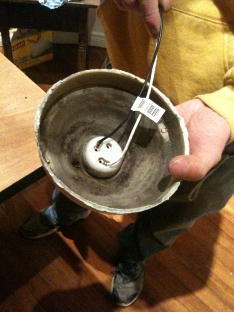 The plan is to use three salvaged lights along the ceiling of our 2nd floor hall, with low watt edison bulbs: