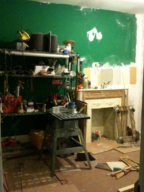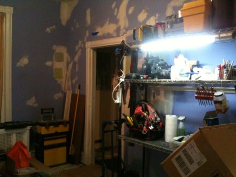 We’re planning to paint the kitchen, living room, closet, and half bath this week so tonight we took some time to clean and rearrange our “workshop”. Before: