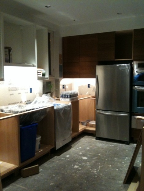 On Friday our electricians installed a few things that made our house a little brighter, and added a few temporary switches for lights that were already installed. Our under-cabinet lighting: Seagull Ambiance w/ Xenon bulbs.