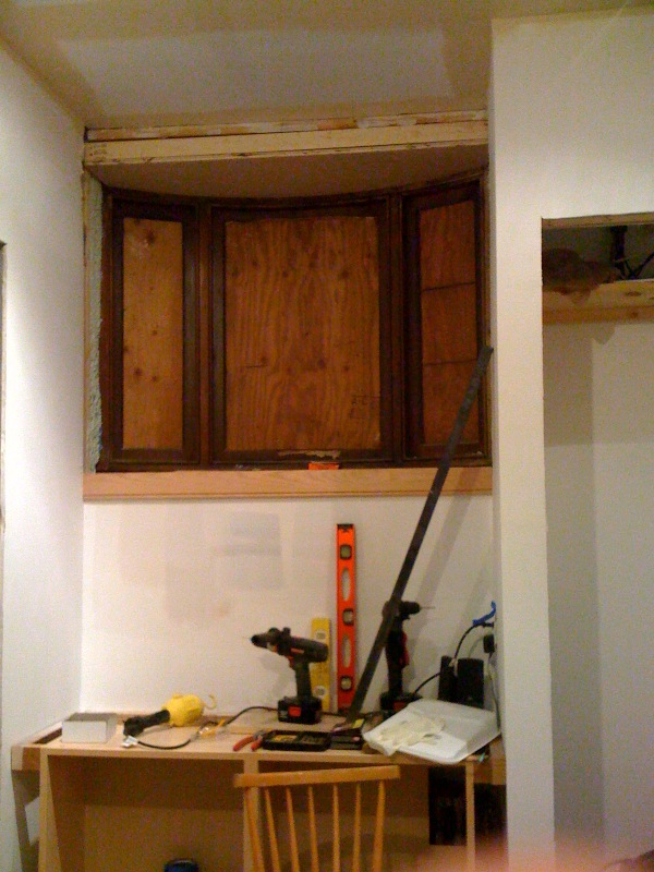 Rob is doing a great job figuring out how to restore the big bow window in the living room. We’re replacing the sill, head of the window and all the trim. He found all the router bits online to match the original profiles. Here’s the progress so far: