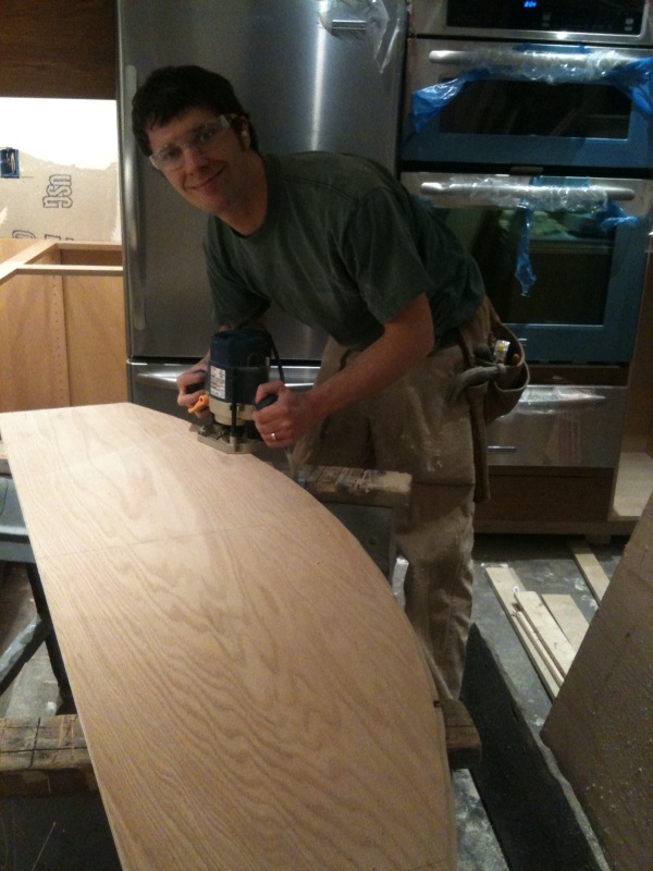 This was last night, pre-granite-d kitchen… No more routers allowed in there now!