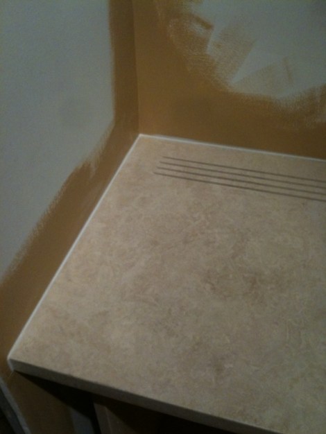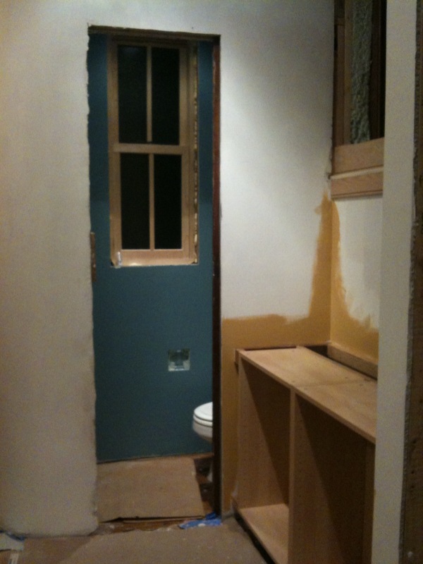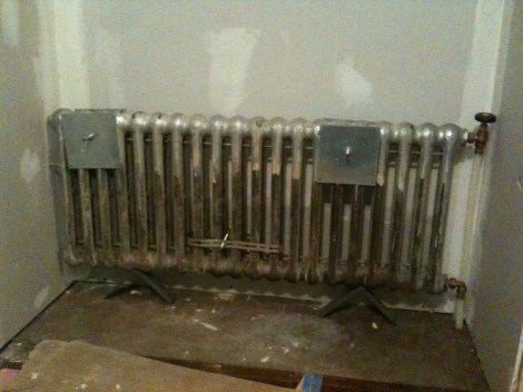 The credenza area has been through a lot. You may recall after the drywall came the radiator installation: