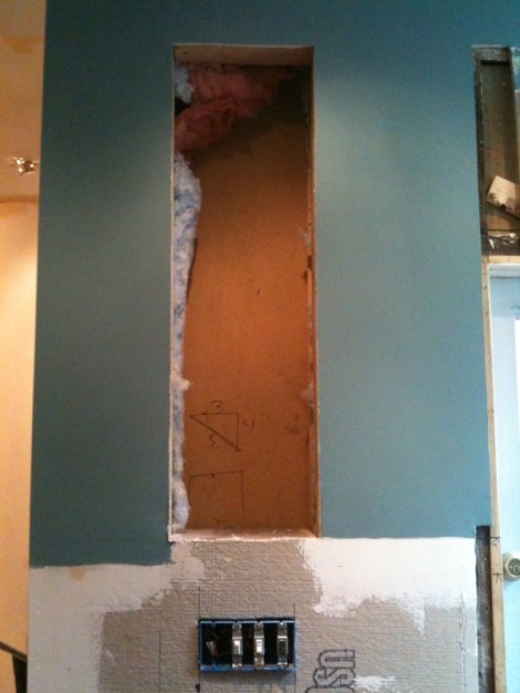 This was such a feat, from carving out the space, then protecting it from the greedy space grabbers (plumbing, duct work, electrical etc) then building it… I cannot wait to paint it and put some books in!