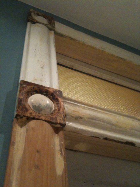 We reused some of the original trim that we cleaned up and sanded and one piece is totally stripped down, which is why it looks half painted: