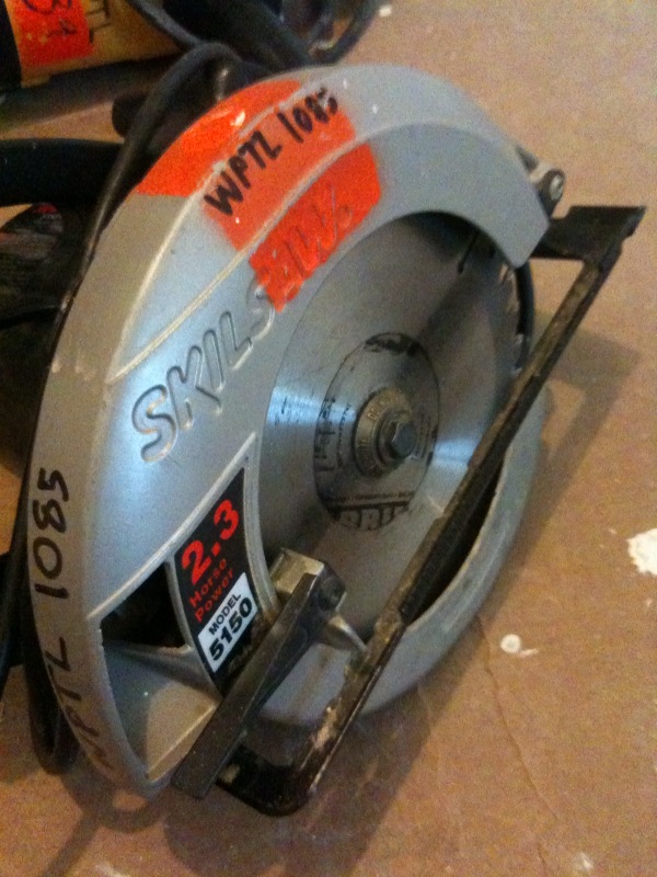 Last week we borrowed a heat gun, saw, and drill. This week we renewed the drill, picked up a different saw, and a grabbed a few scrapers and a crowbar to help lift that lauan off the floor.