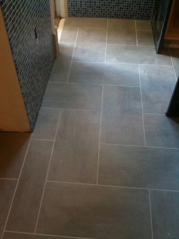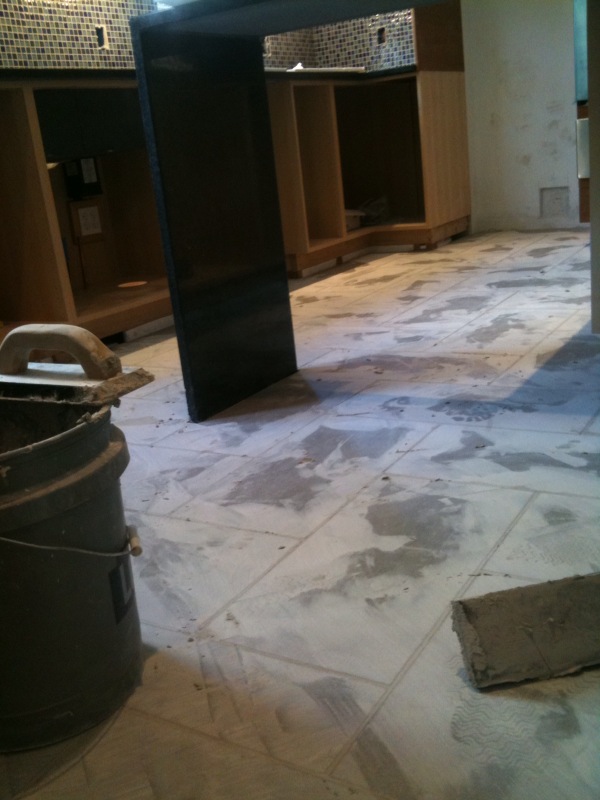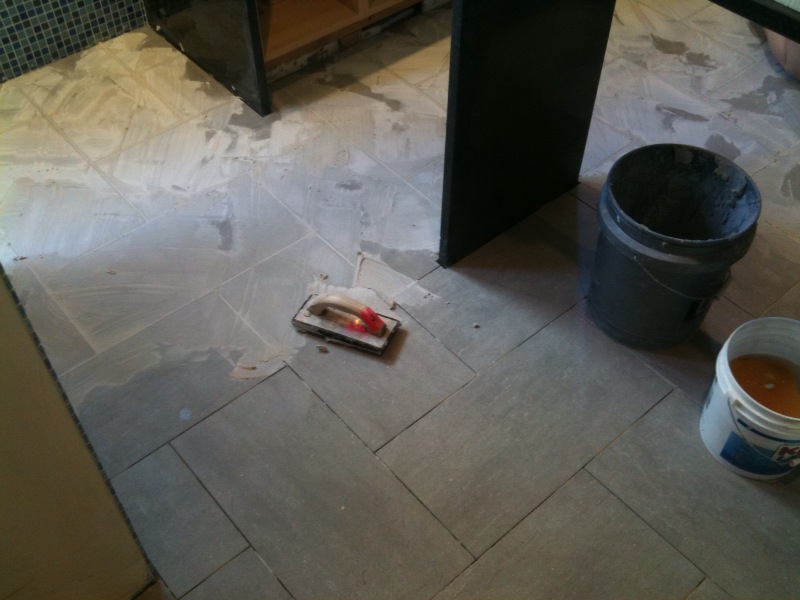 This part went pretty quickly. Totally grouting barefoot: