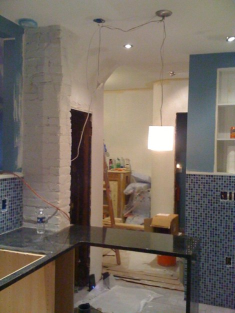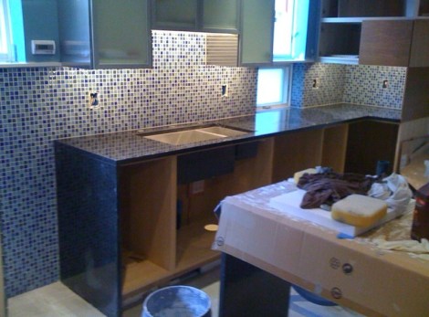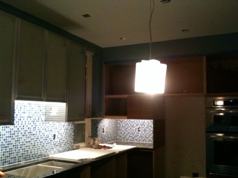 Ooh La La May 16, 2010 · by madisonsquare · Bookmark the permalink. · Rob was super busy today- he finished grouting ALL of the 1×1 tile! That’s a lot of grouting!! And what a quality job: He also starting mocking up his ideas for our peninsula pendants using the glass shades we bought at the artemide sale: Ooh la la: Share this: Click to email a link to a friend (Opens in new window) Email Click to share on Facebook (Opens in new window) Facebook Click to share on Pinterest (Opens in new window) Pinterest Like Loading... Related
