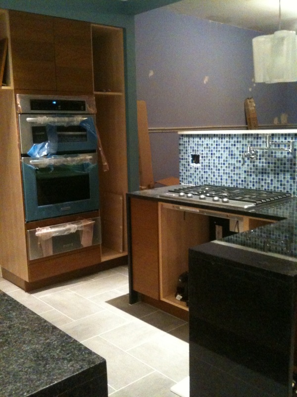 One assembled drawer and a long brainstorming discussion on trash and recycling locations: