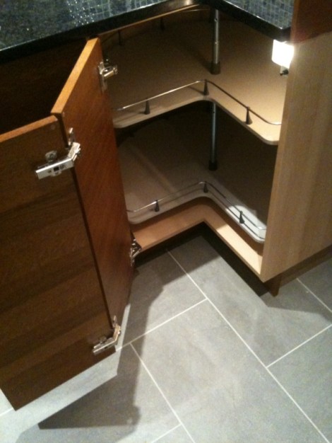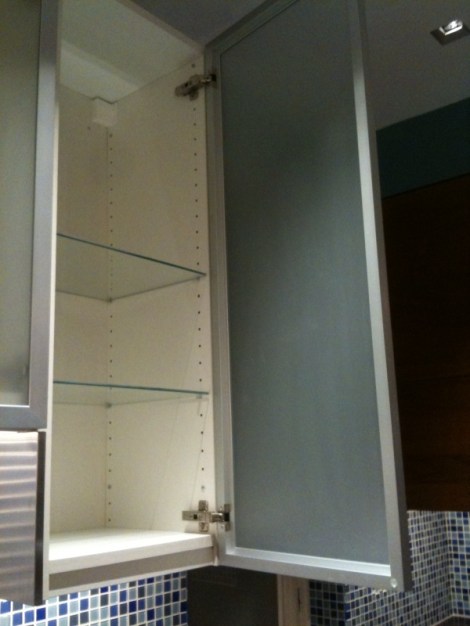 This corner cabinet needed a light that turns on when you open the door. How else will we see the koolaid and jello*?