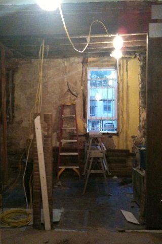 Ripping down layers of plaster to gain ceiling height, and then realizing we had some structural issues due to plumbing issues and needed to sister some joists: