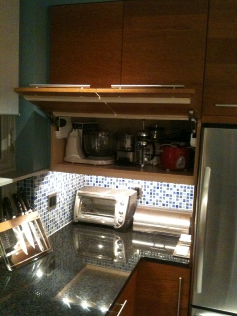 …and so we explored the world of lift up hinges. World of difference that our mixer, rice cooker, French press and friends really appreciate.
