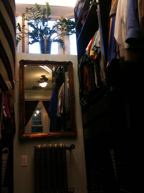 Closet Makeover July 1, 2010 · by madisonsquare · Bookmark the permalink. · Take one early-1940s mirror we bought near Onancock, VA the day before we settled: And one giant plant: And we have instant new closet additional dressing area: Sweet! Share this: Click to email a link to a friend (Opens in new window) Email Click to share on Facebook (Opens in new window) Facebook Click to share on Pinterest (Opens in new window) Pinterest Like Loading... Related