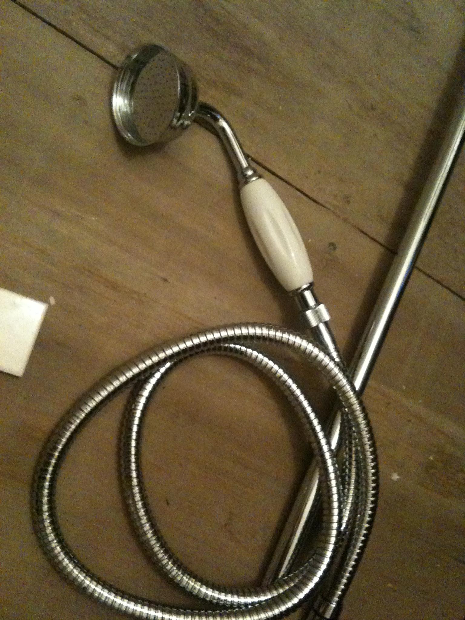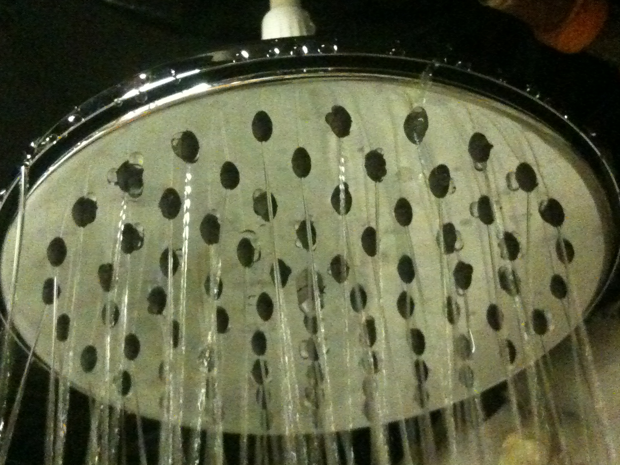 Testing the rainfall type showerhead out by hooking it up in our downstairs shower: