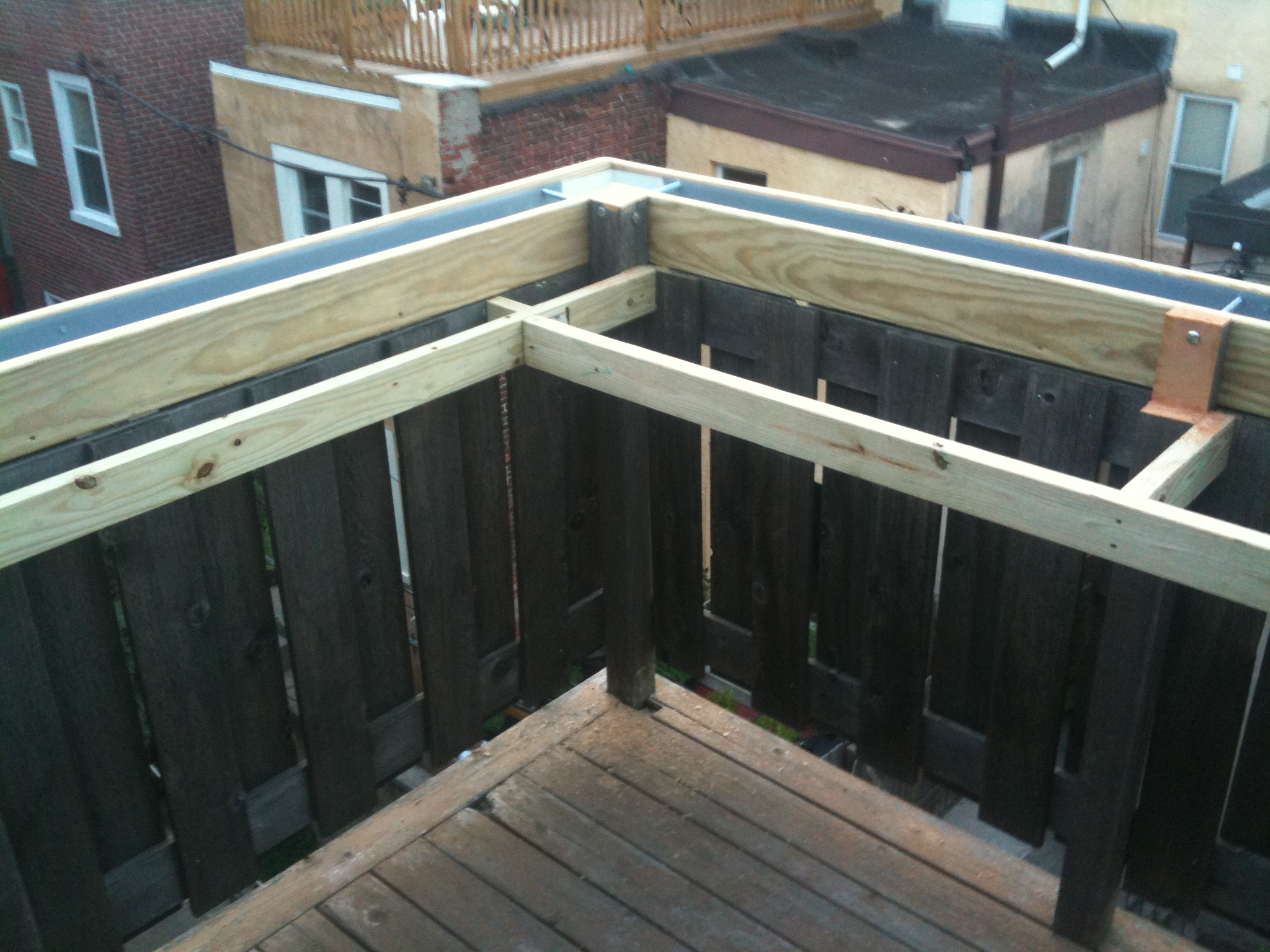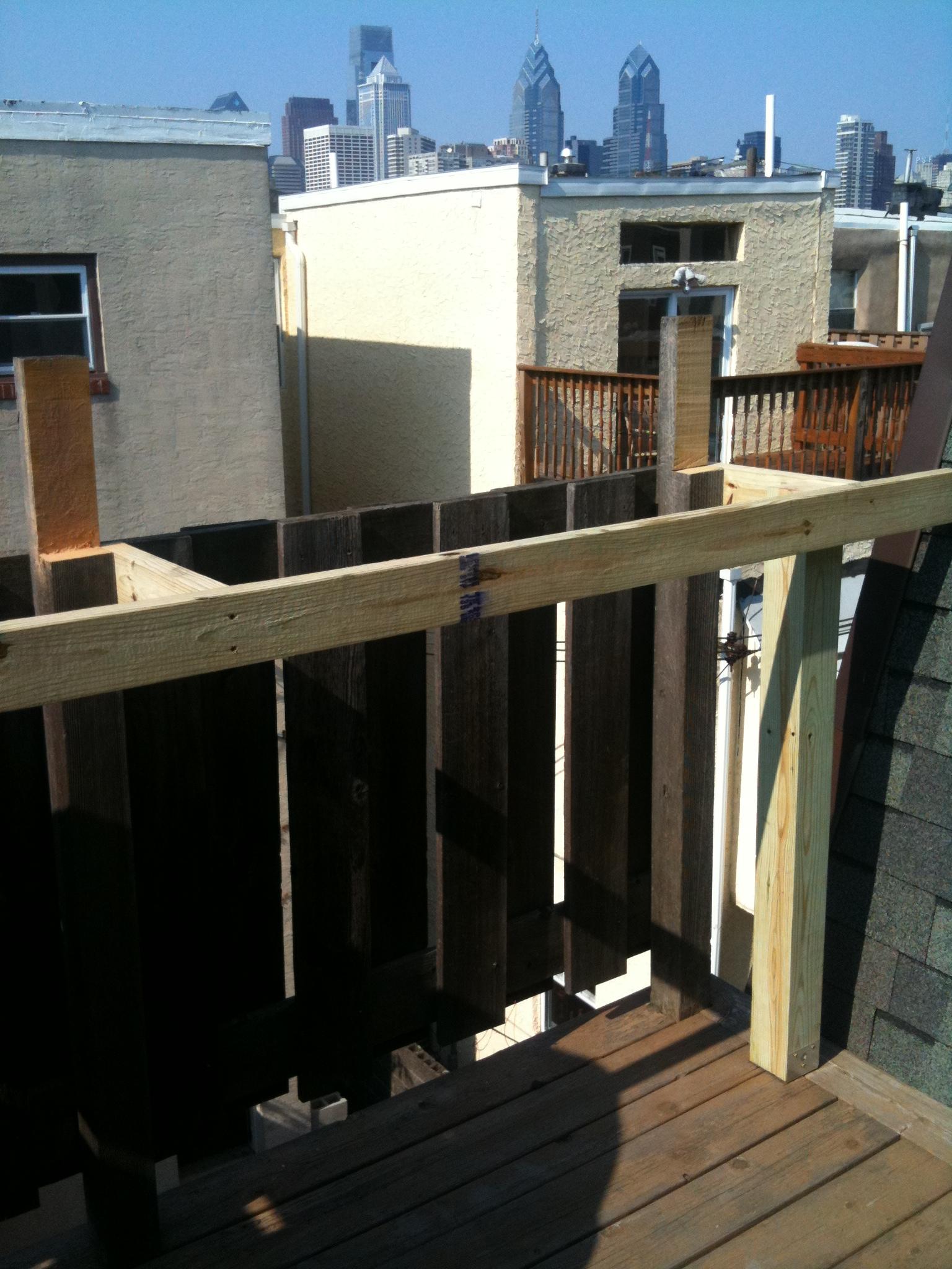 We also are dealing with a gap at the end of the existing railing which is a tad unsafe, by adding another post: