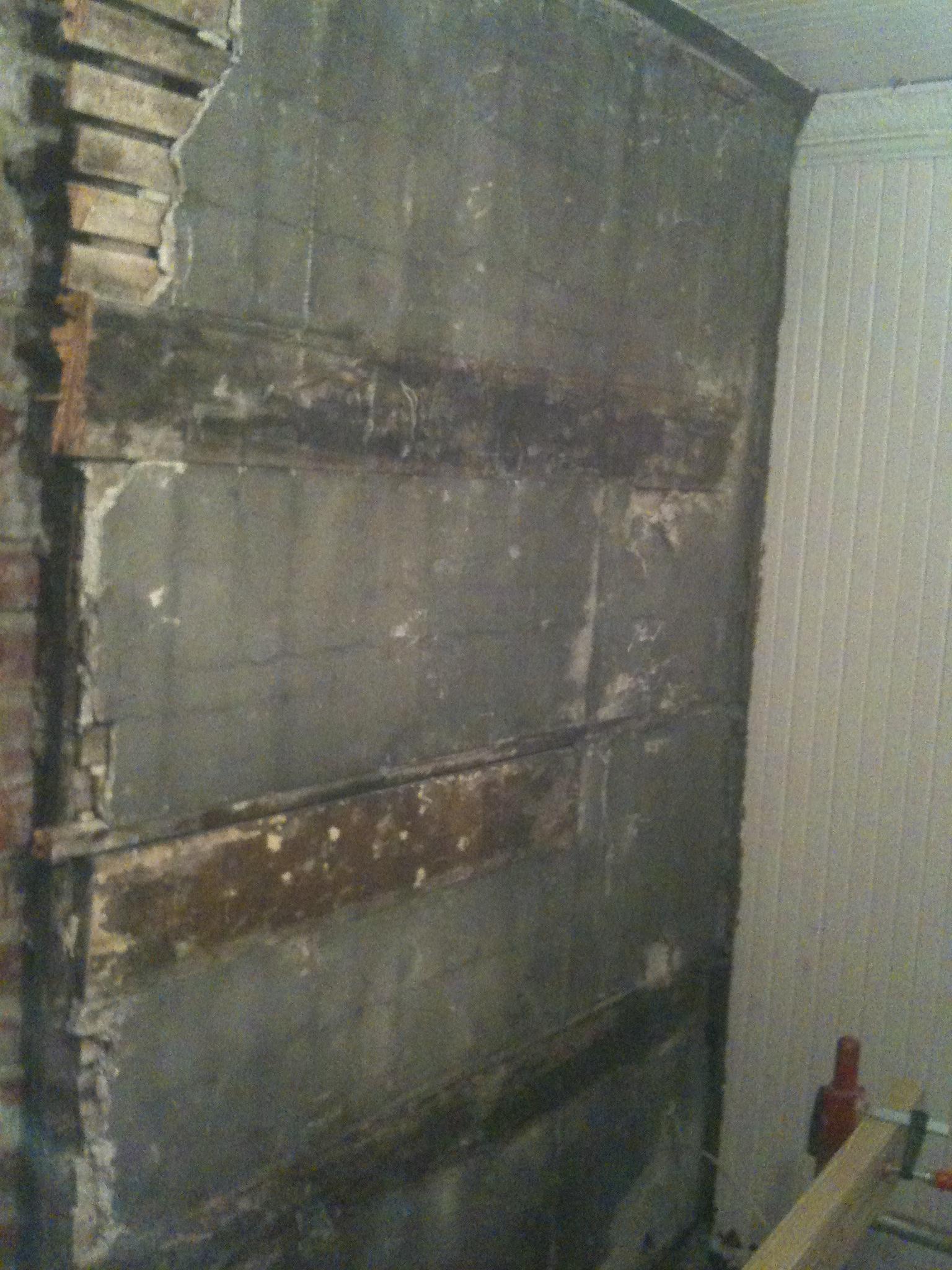 Plaster with nailer strips under paneling, lath under plaster, Brick under lath: