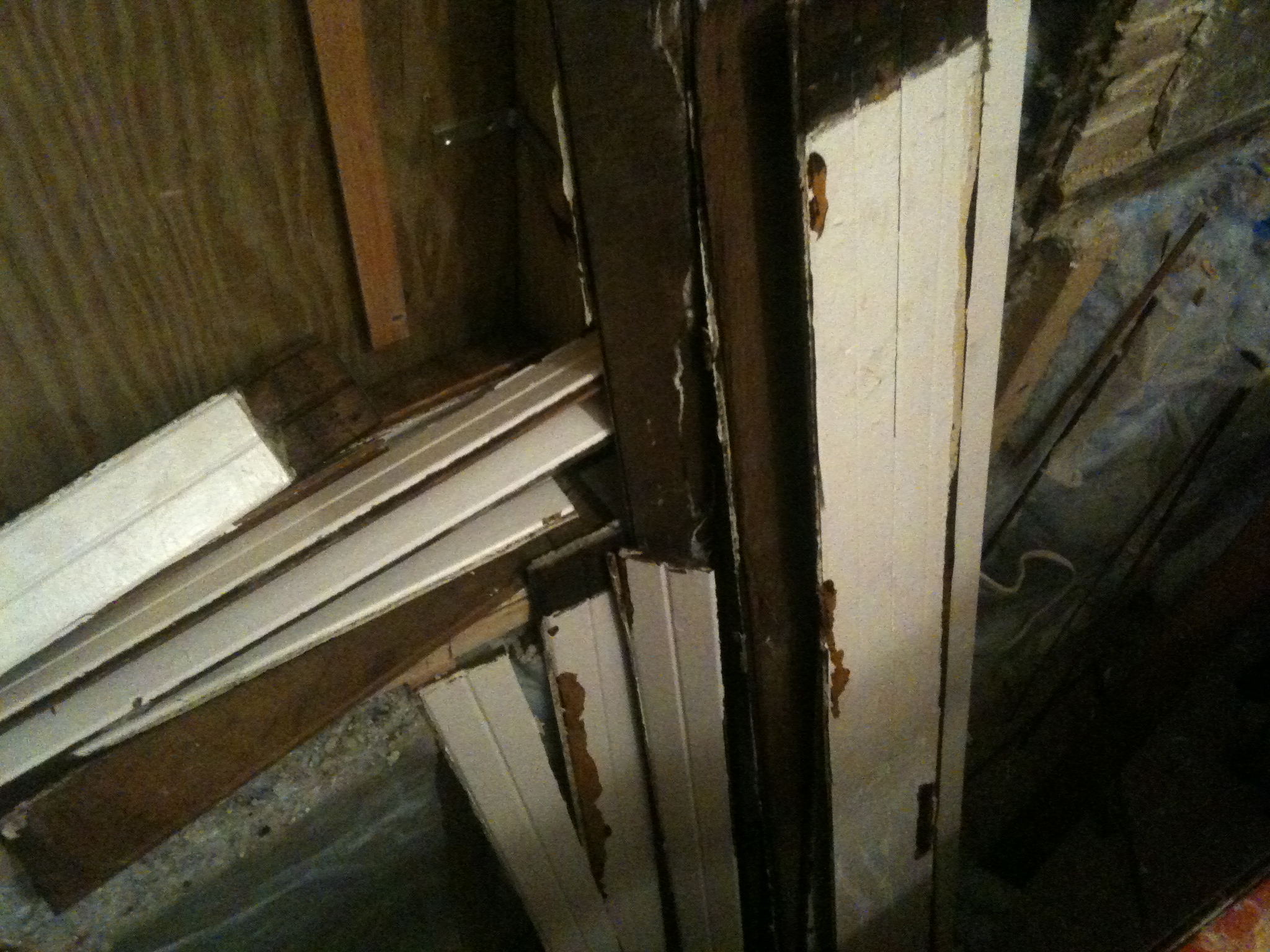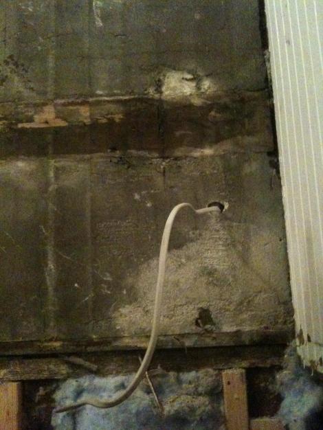 The plaster’s coming down too- we’re going to do a real insulation job on this bathroom now which will complete the whole north wall of insulation!