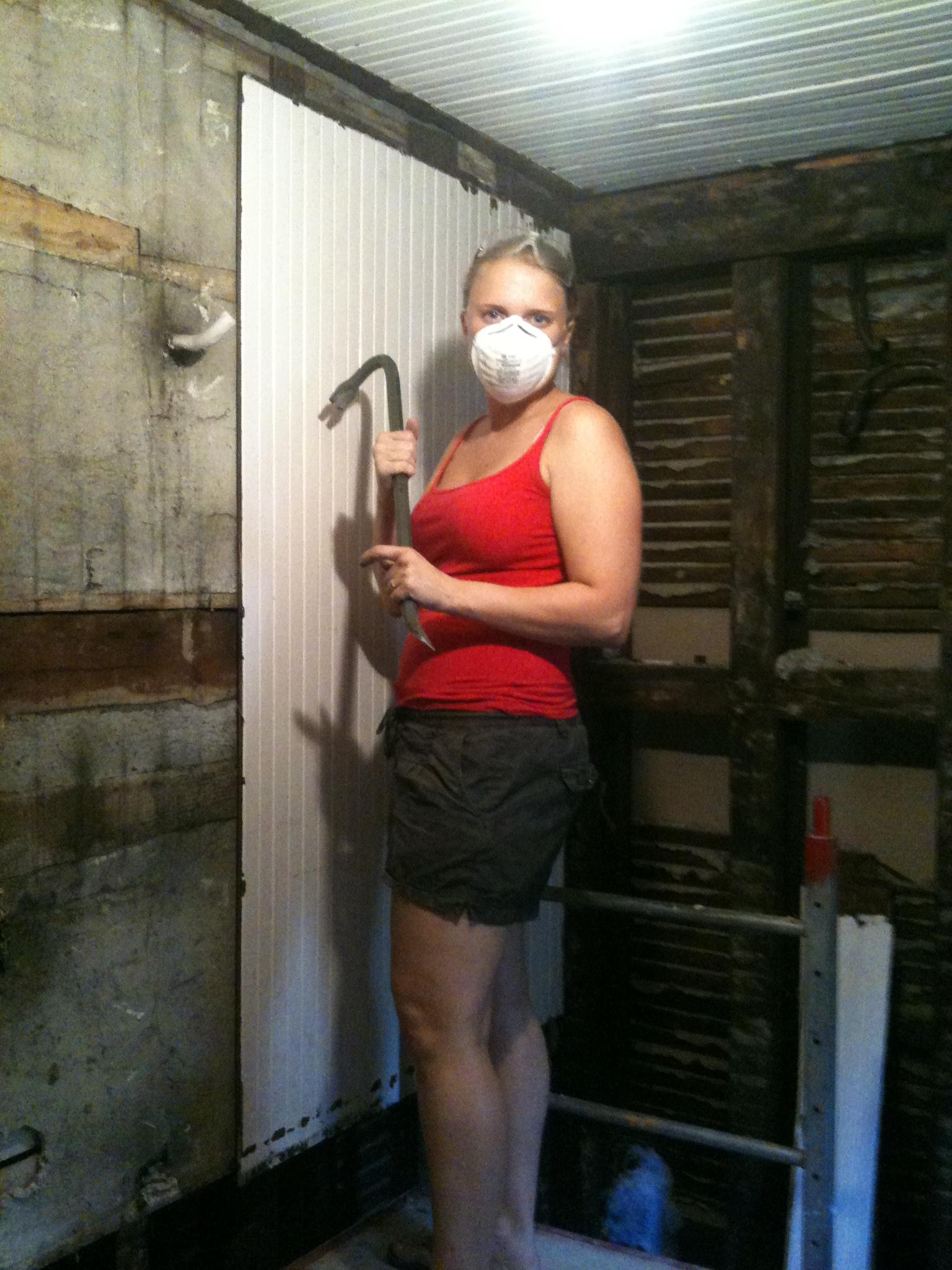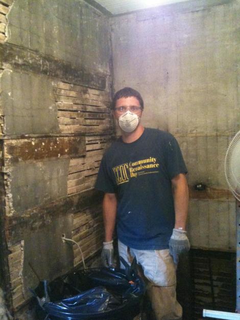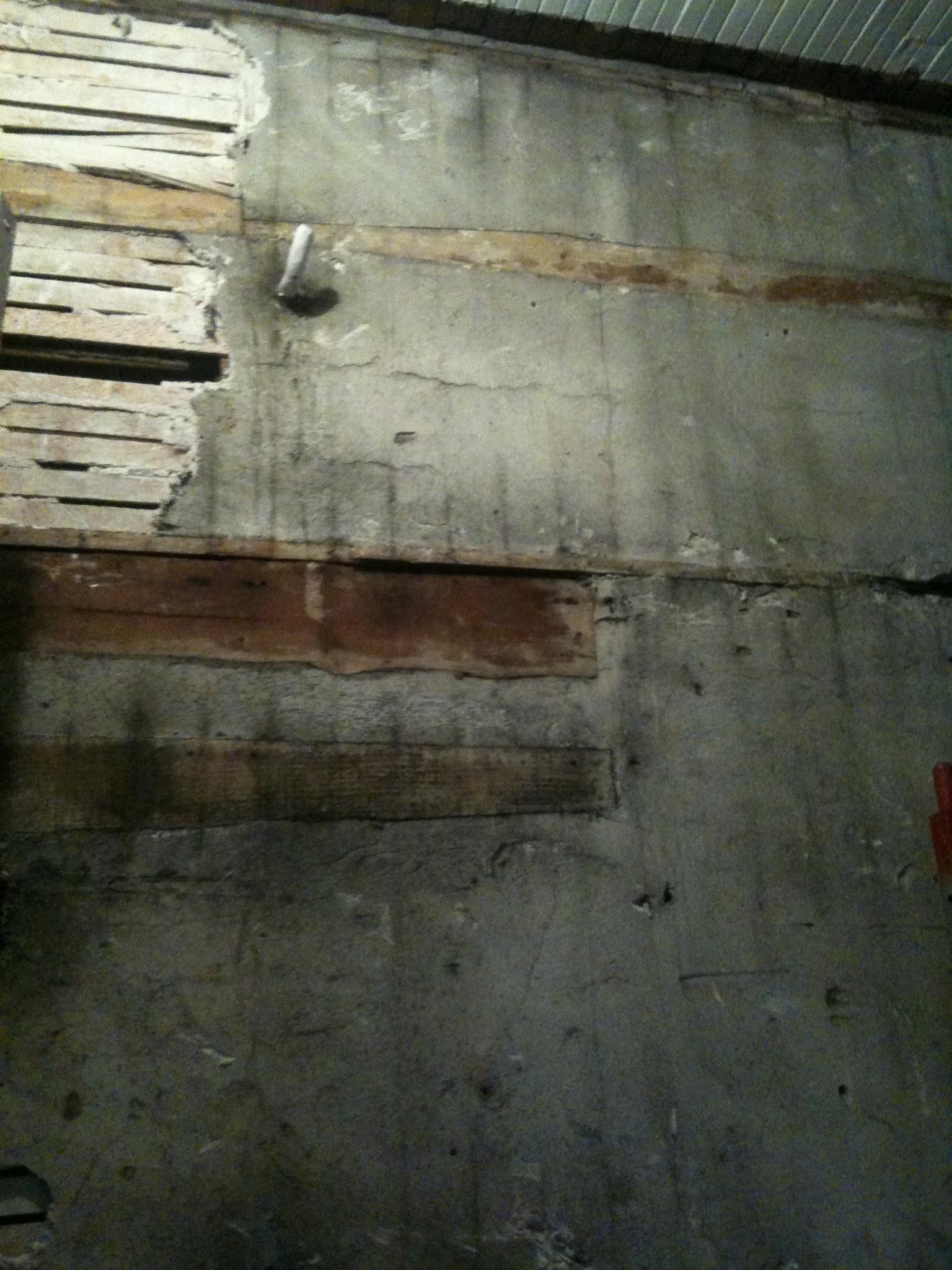 Interesting- this was the location of a wall hung tank for a toilet! The white piece sticking out the top was to fill the tank which was mounted on the brown boards below it: