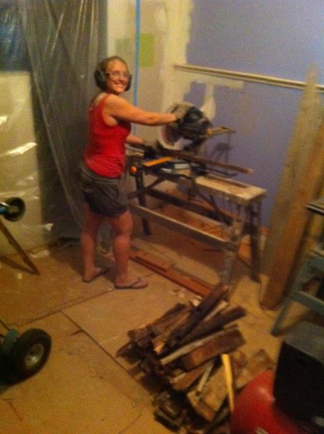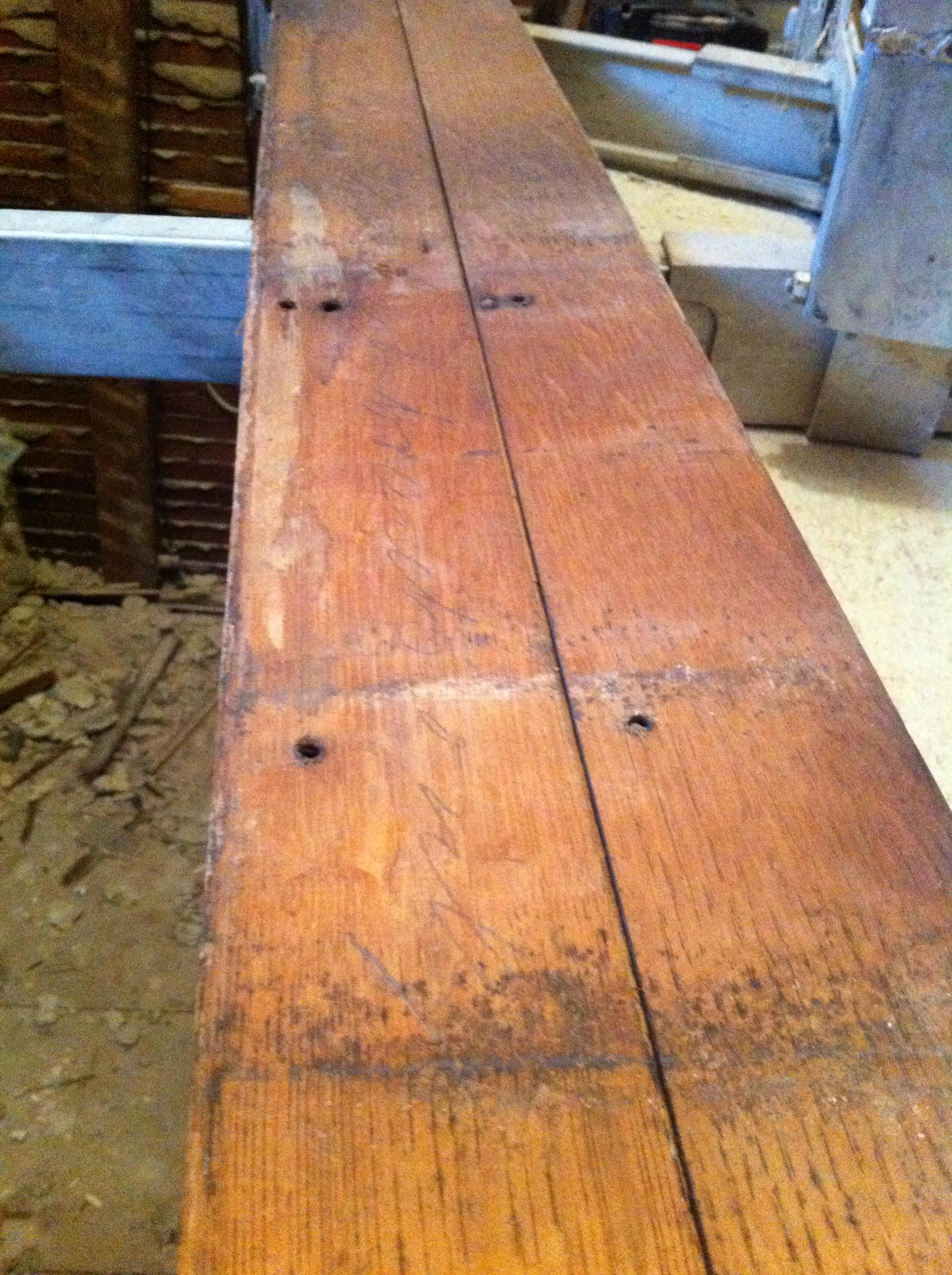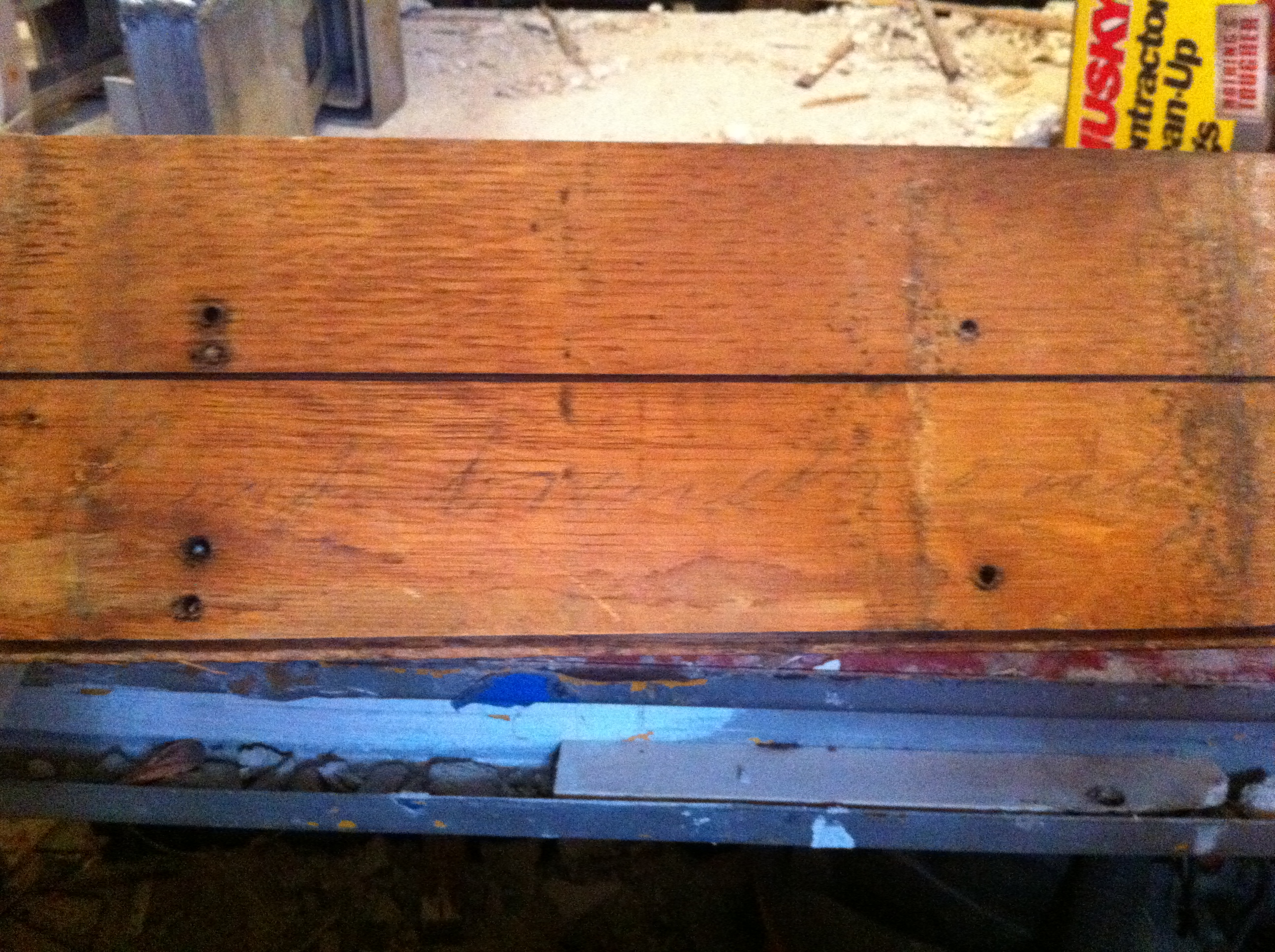 A surprise 100 yr old cursive message (in lead pencil) awaited us behind just one of the dozens of beadboard panels we removed from the bathroom walls: