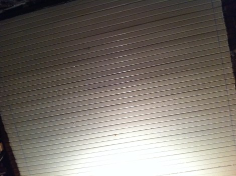 Tonight we attempted to determine if the existing stud walls are level or square, and of course they aren’t so we marked some guidelines. Ceiling: