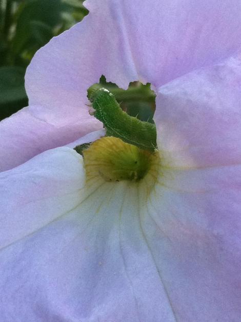 Except when you look closely, SOMEONE has been nibbling away at a few of the petunias!