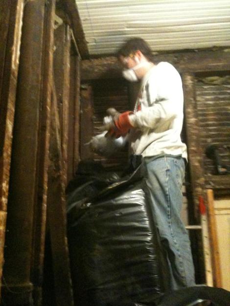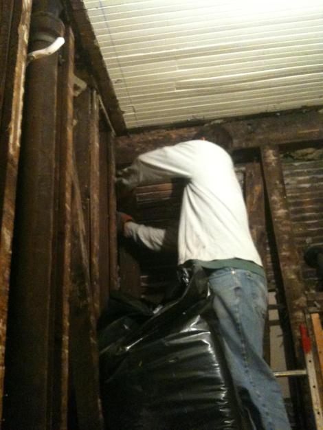 Last night was all about lots of cleaning, removing useless ‘structural’ posts (see crooked post in process of being removed):