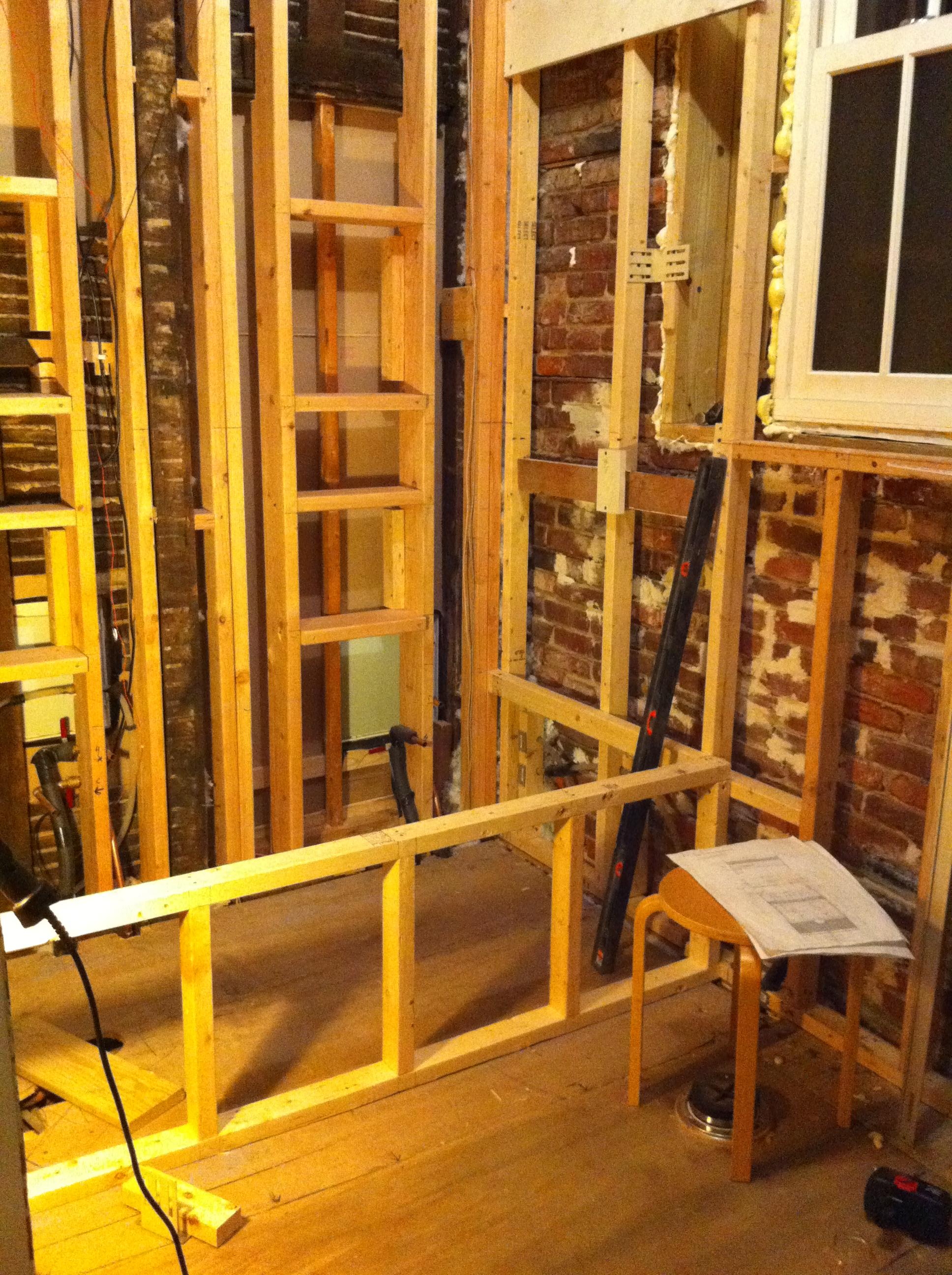 After: yes wall! This will be the front of our new tub; to be tiled.