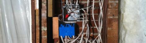 We also busted out the electrical work today too… Plumbers, electricians, carpenters… From the top, it’s thermostat, intercom, switches: And done: