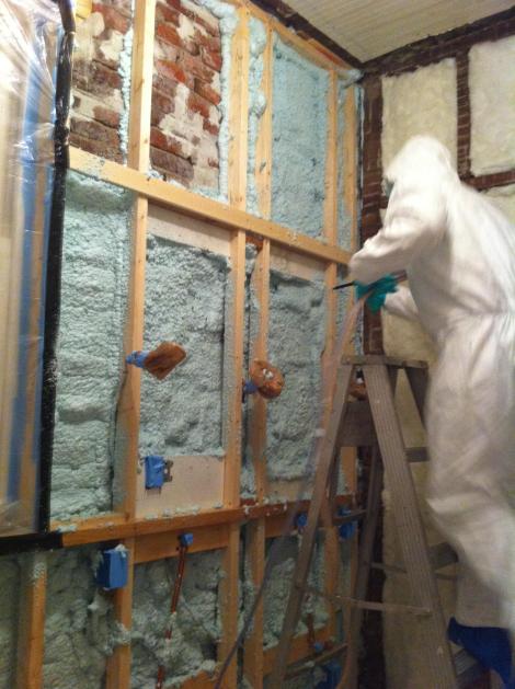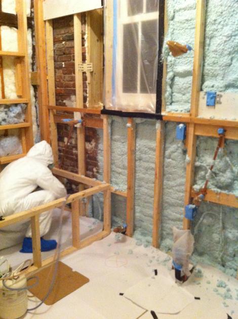 It was a sad goodbye to the exterior brick in the bathroom this fine evening… Because It Was Time To Foam It Green: