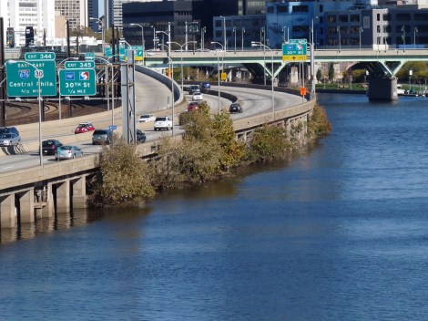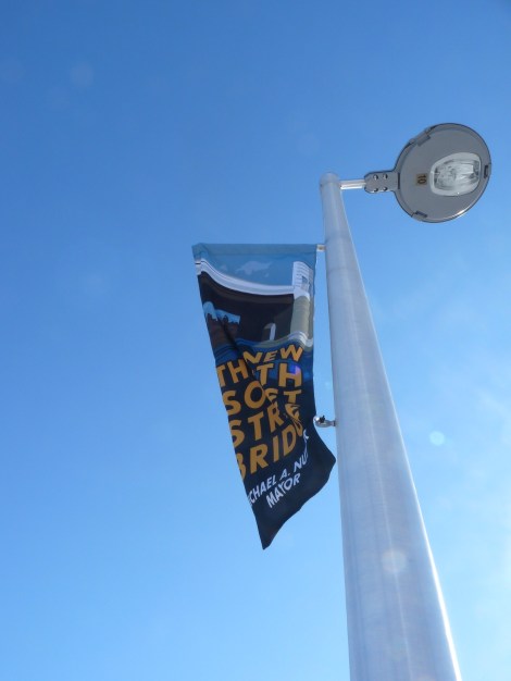 Saturday, the newly rebuilt South Street bridge opened after two years. It’s on the north end of our neighborhood and connects our side of the river to West Philly (Drexel, Penn) and has ramps onto the Expressway going north and south (for visiting family, this is a little more scenic than exiting at Grey’s Ferry).