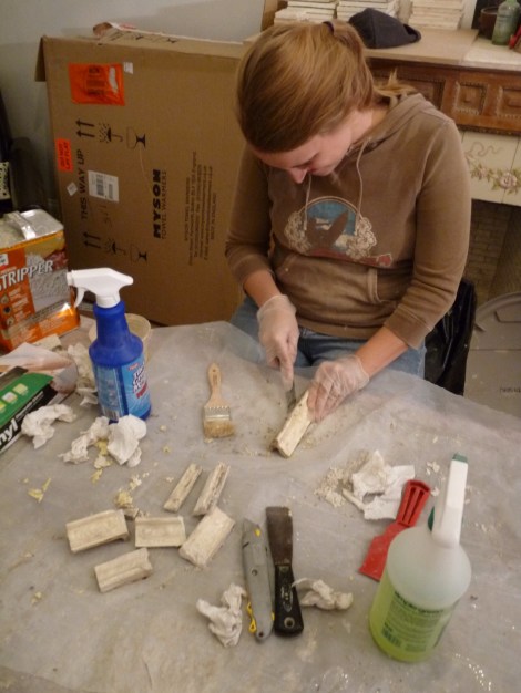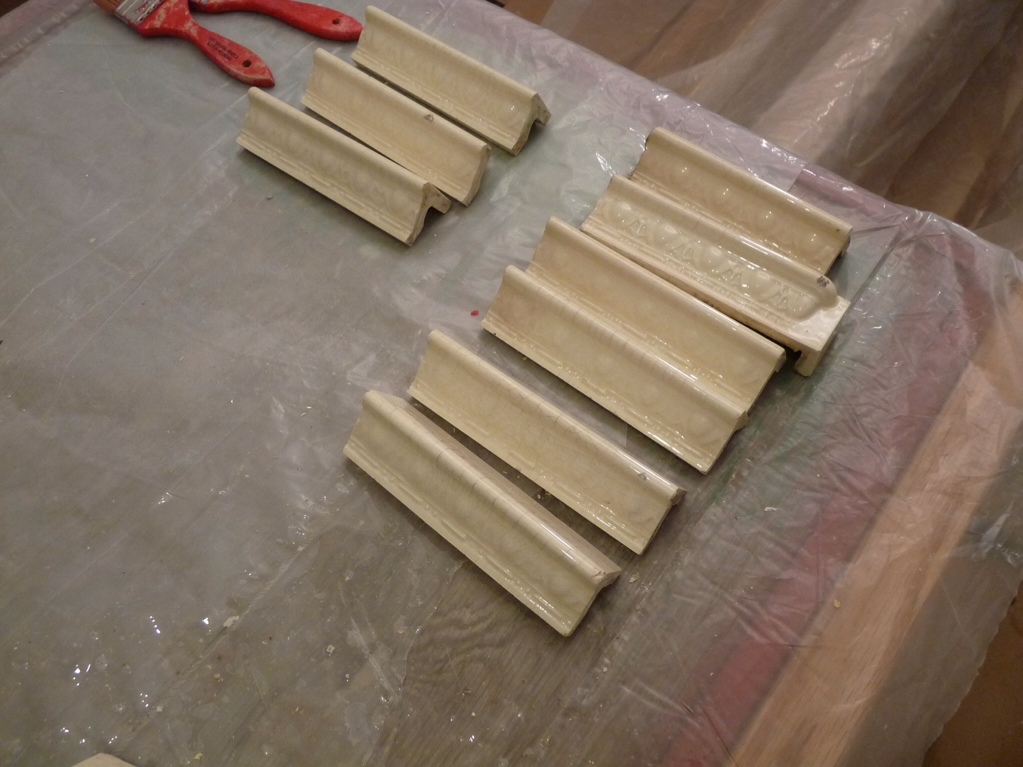 Project Tile: Cap It November 15, 2010 · by madisonsquare · Bookmark the permalink. · These lovely tiles are the toughest yet: Rob carefully cut the old mortar out of the back of each cap using the tile saw: Then we got down to business cleaning away: But aren’t they pretty?? They’re also from Robertson Tile Co, design 89 or 39. Share this: Click to email a link to a friend (Opens in new window) Email Click to share on Facebook (Opens in new window) Facebook Click to share on Pinterest (Opens in new window) Pinterest Like Loading... Related