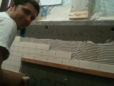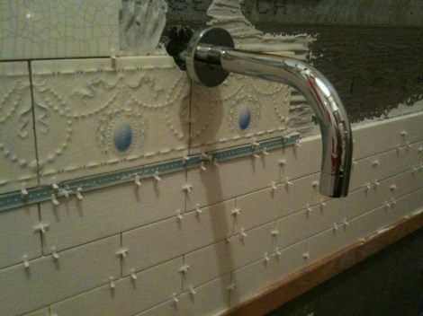 Tile Time December 8, 2010 · by madisonsquare · Bookmark the permalink. · Testing the faucet – precise cuts: Progress at the vanity: Pretty pretty: Workin hard: Share this: Click to email a link to a friend (Opens in new window) Email Click to share on Facebook (Opens in new window) Facebook Click to share on Pinterest (Opens in new window) Pinterest Like Loading... Related