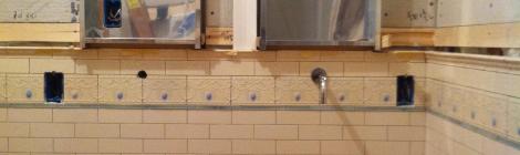 We installed the recessed mirrored cabinets (minus the doors/shelves & without removing the protective plastic) so we can panel around them: I’d call them ‘medicine’ cabinets but I recently heard […]