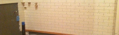 As disposable drop cloths: Another brick in the wall: Just three more rows of 2×6 to go.