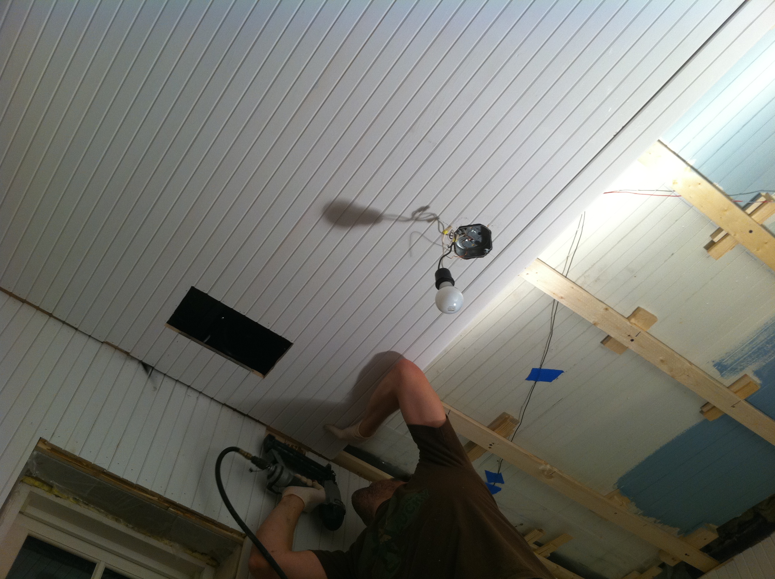 New Years Day Resolution: Finish The Paneling! January 2, 2011 · by madisonsquare · Bookmark the permalink. · Ready, set, nail gun: Panel by panel: Nail by nail: Whew, and DONE! No rest for the weary, though- it’s time to paint! Share this: Click to email a link to a friend (Opens in new window) Email Click to share on Facebook (Opens in new window) Facebook Click to share on Pinterest (Opens in new window) Pinterest Like Loading... Related