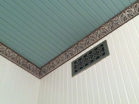 Oohlala Crown Moulding January 15, 2011 · by madisonsquare · Bookmark the permalink. · Crown moulding is deserving of some major love this evening… As are our grills… And a ceiling view from the tub… Scaffold is down, and everything is starting to look like a bathroom again! Share this: Click to email a link to a friend (Opens in new window) Email Click to share on Facebook (Opens in new window) Facebook Click to share on Pinterest (Opens in new window) Pinterest Like Loading... Related