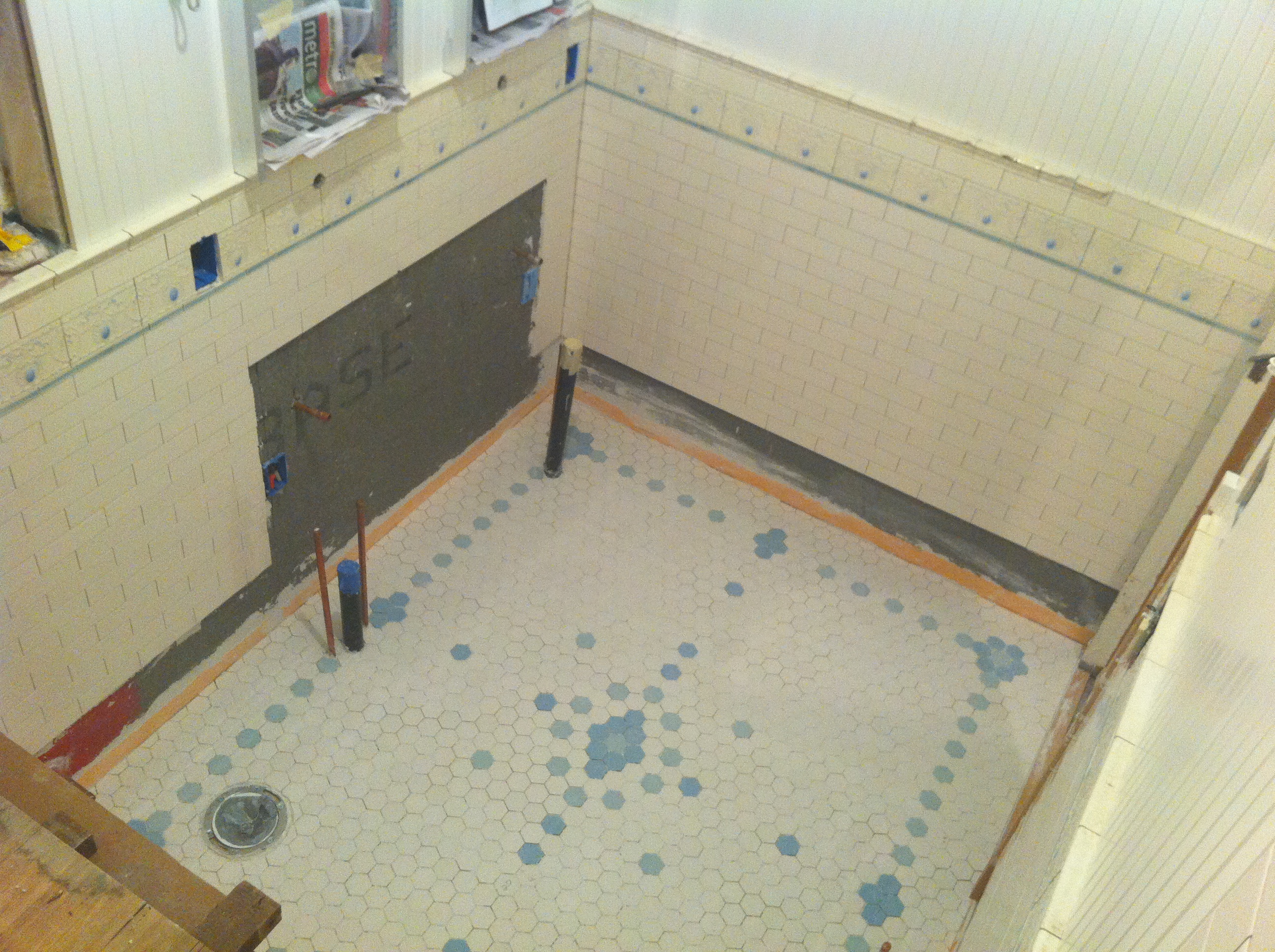 So thats the State Of The Bathroom! Next steps include finish the tile base, grout, and seal grout and wall tile.