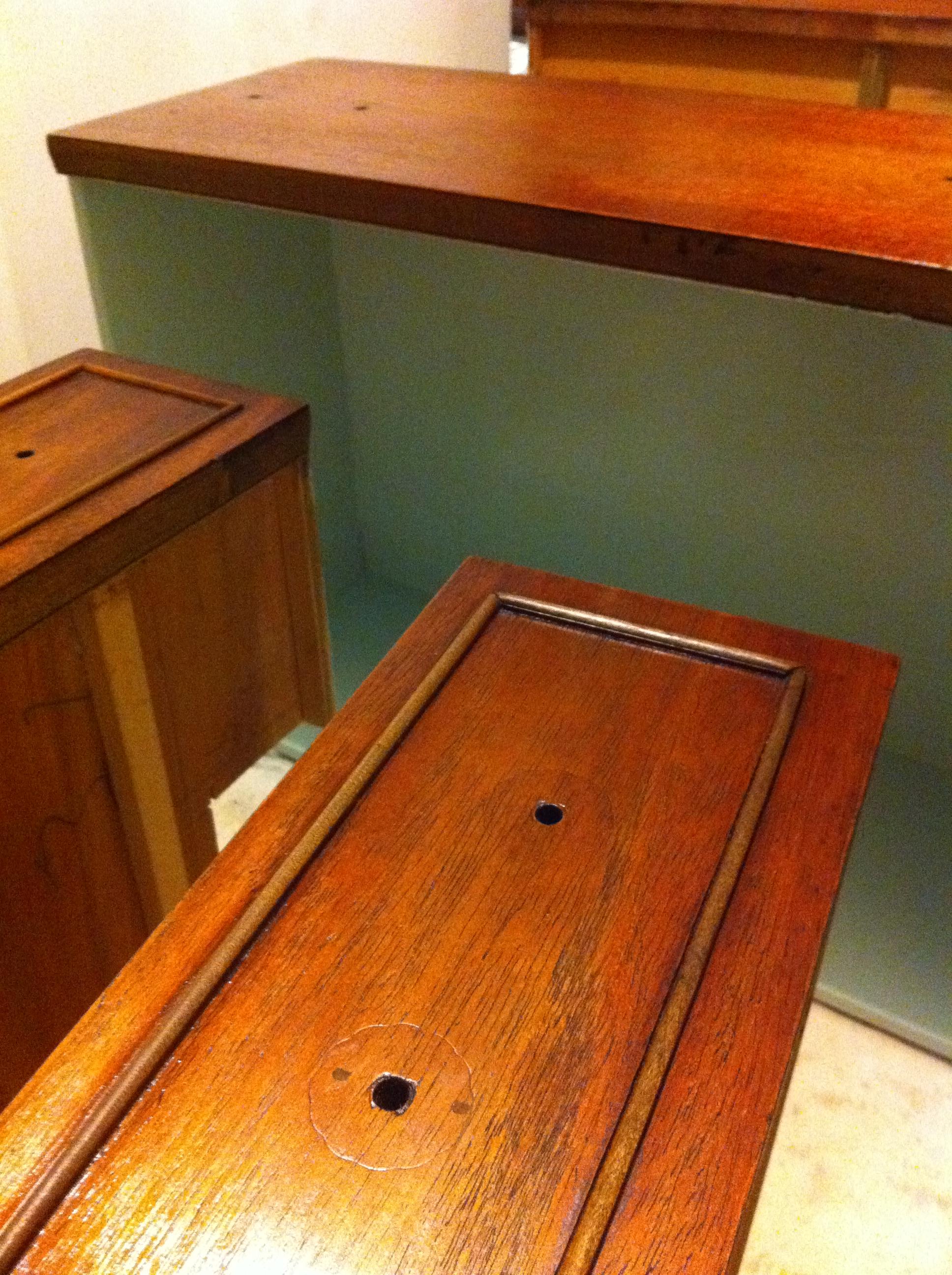 Well, we can check “staining the vanity” off of our list. Here’s the rest of the drawers: