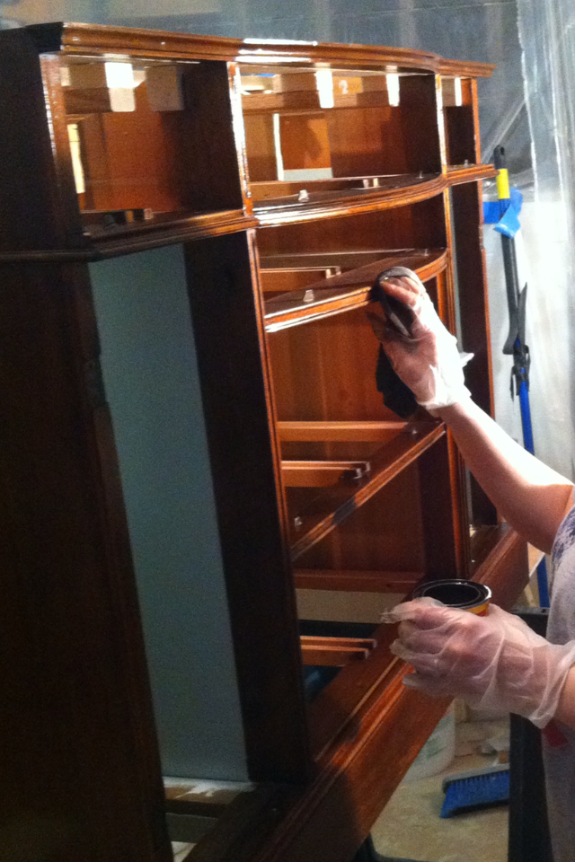And the fun continues with action shots of me getting my staining skills on with the big vanity: