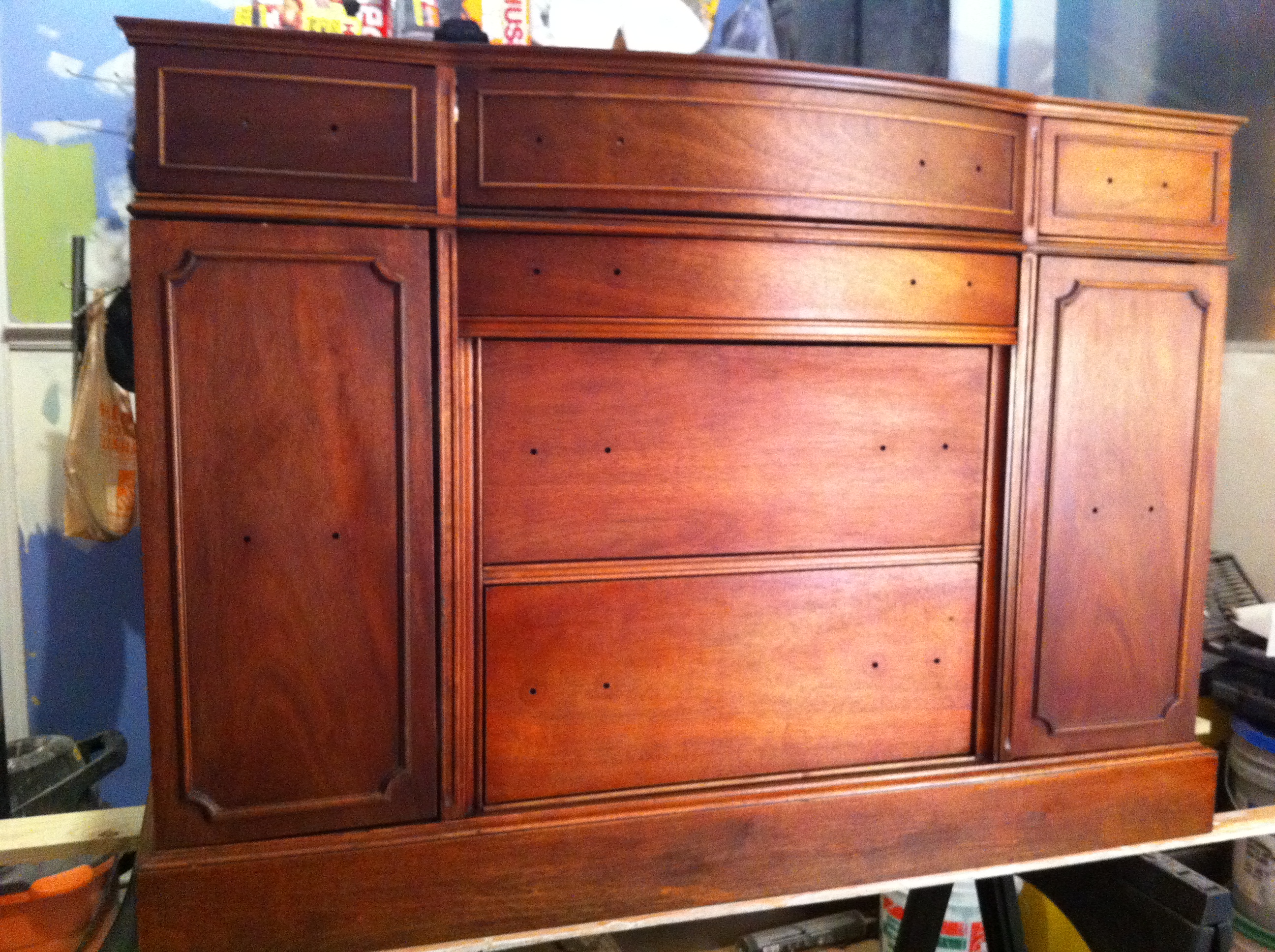 Good News March 10, 2011 · by madisonsquare · Bookmark the permalink. · Vanity had its touch-up stain and touch-up drawer paint tonight, and we assembled it all for a group photo: To the side: Really really ready for lacquering now. Share this: Click to email a link to a friend (Opens in new window) Email Click to share on Facebook (Opens in new window) Facebook Click to share on Pinterest (Opens in new window) Pinterest Like Loading... Related