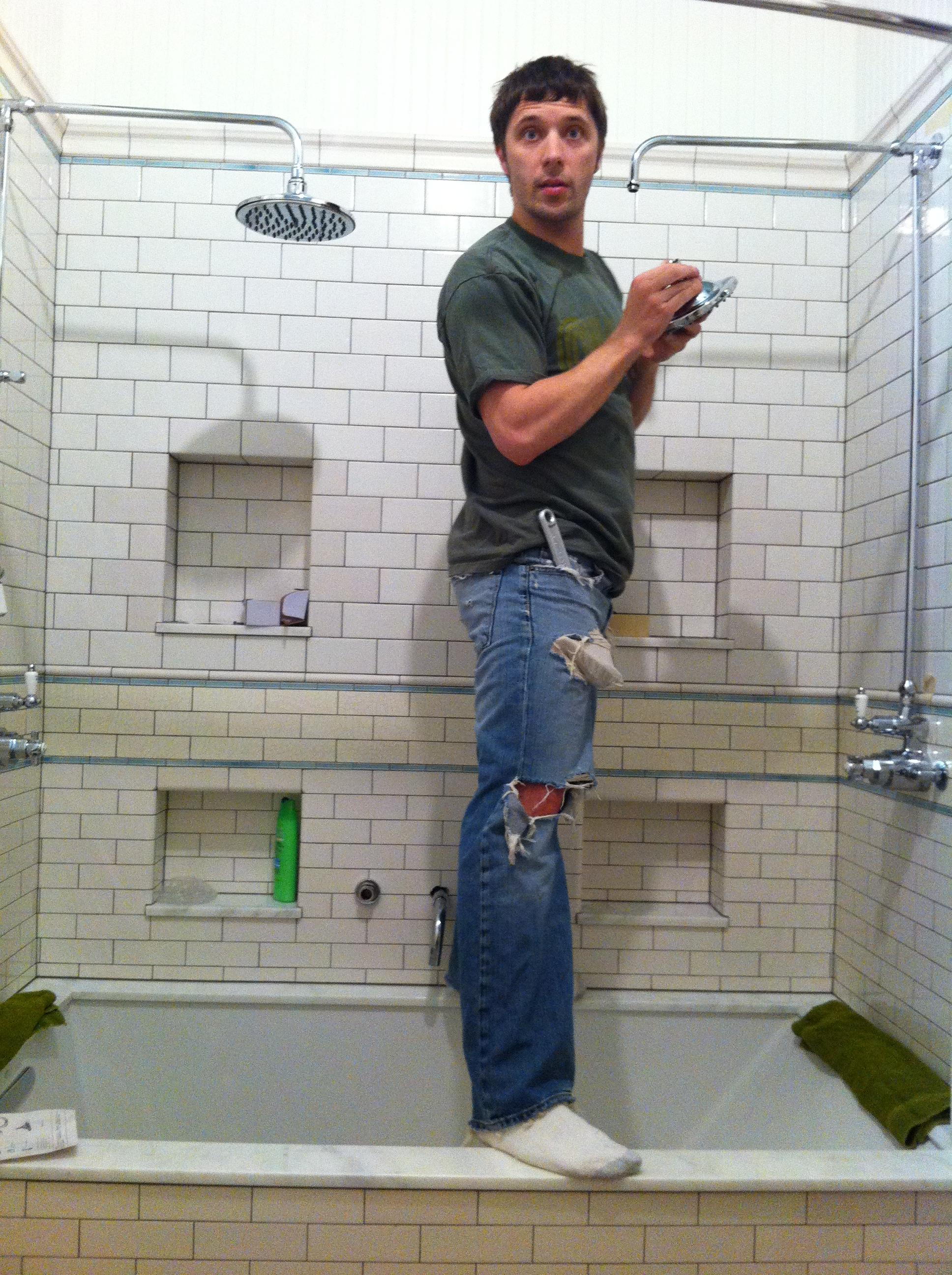 Sneak Peek: Rob Installs The Shower Heads April 18, 2011 · by madisonsquare · Bookmark the permalink. · Share this: Click to email a link to a friend (Opens in new window) Email Click to share on Facebook (Opens in new window) Facebook Click to share on Pinterest (Opens in new window) Pinterest Like Loading... Related