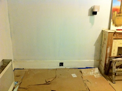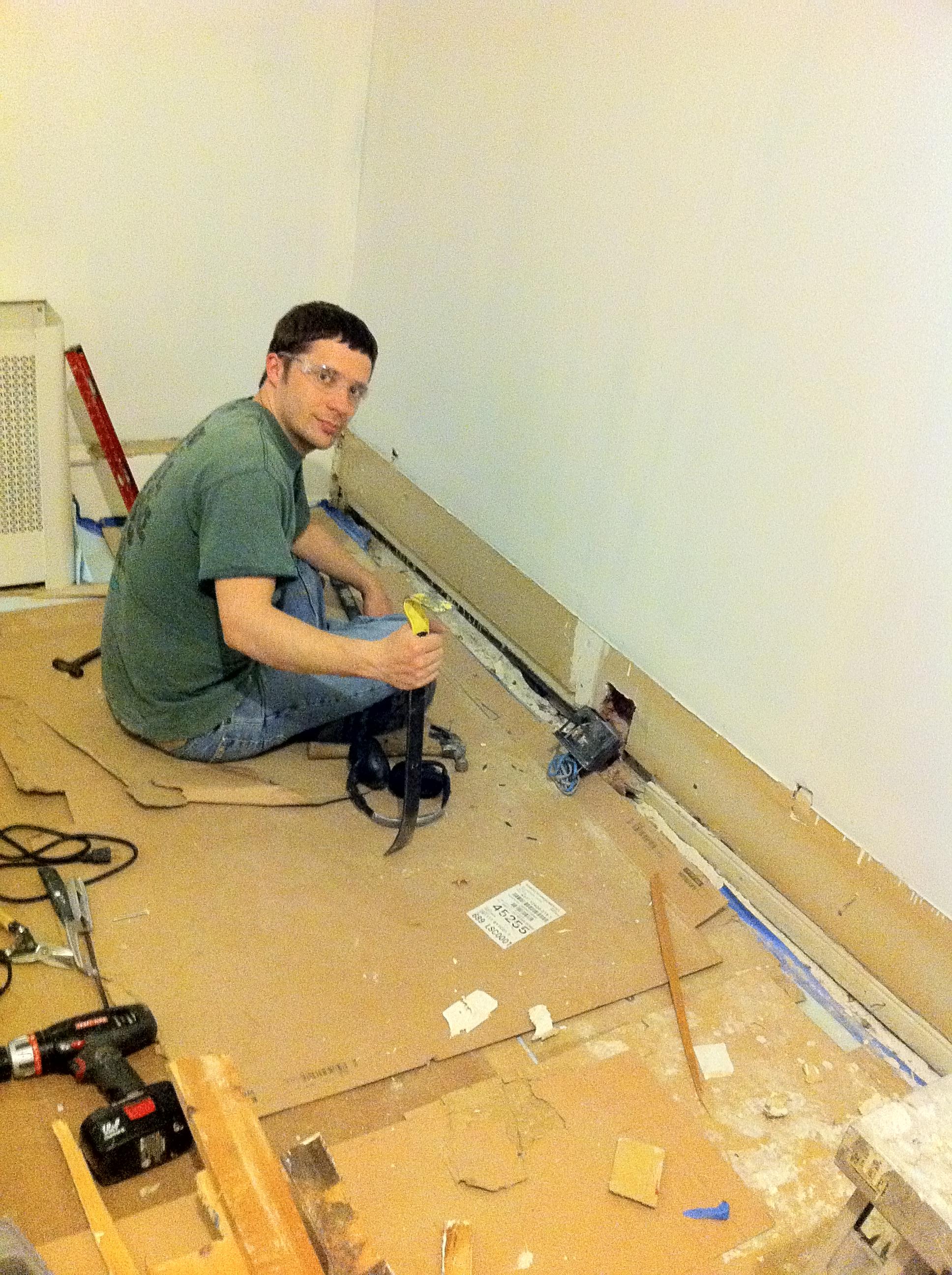 As with all our projects, we tend to make it look worse before it looks better. Demo that old baseboard! (old but not original… Nailed OVER the original)