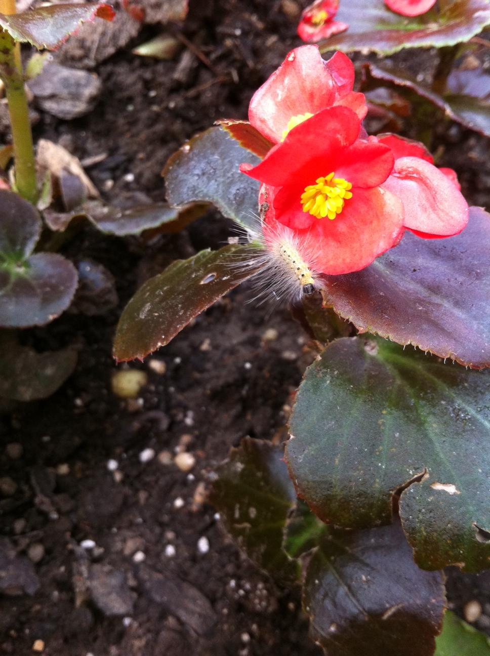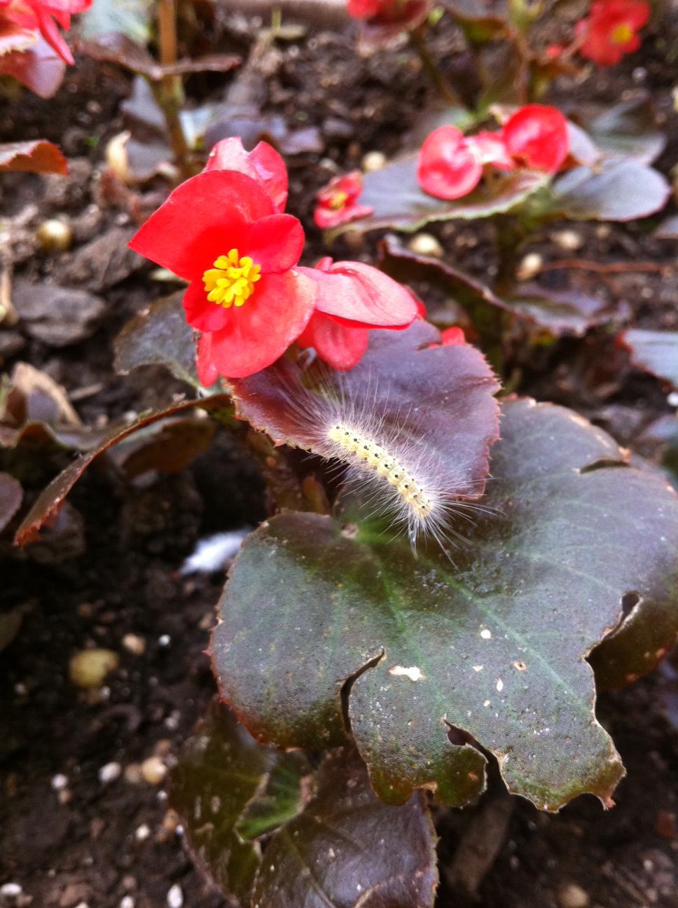 Garden Visitor July 5, 2011 · by madisonsquare · Bookmark the permalink. · Have you ever seen such a fuzzy little caterpillar??? He was really into exploring this begonia: Unfortunately we don’t have a guest room yet so he’s not staying. Sorry, buggy! Share this: Click to email a link to a friend (Opens in new window) Email Click to share on Facebook (Opens in new window) Facebook Click to share on Pinterest (Opens in new window) Pinterest Like Loading... Related